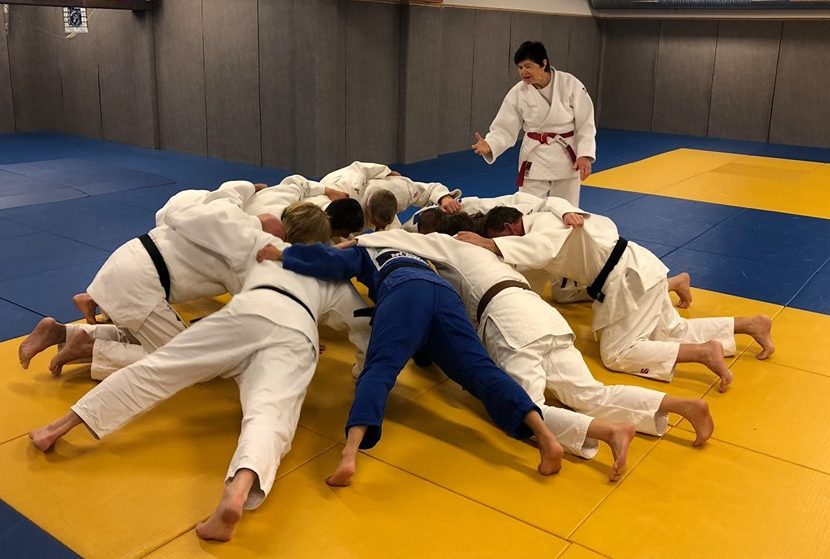 På søndagen var katame-no-kata tema. Stine Lastein kom innom før lunsj for å se hvordan det gikk svarte på spørsmål enkelte hadde.